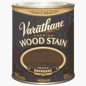 Rust-Oleum 241412 Premium Wood Stains, EspressoVarathane Premium Wood Stain penetrates up to twice as deep as competitive brands to reveal the beauty of natural wood grain. Apply to wood for long-lasting, translucent stain. Uses exclusive soya-oil base and anti-settling formula for better grain enhancement with less stirring during application. Please read product labels for additional directions and precautions before usingRust-Oleum 241412 Premium Wood Stains, Espresso Features:; Superior soya oil base; Premium pigments; Contemporary and classic colors; A Soya oil-based premium wood stain that is formulated with a unique base for deeper penetration and premium synthetic pigments for clearer color; Ideal for use on all interior wood projects including furniture, cabinets, doors, trim, floors, and paneling; Covers approximately 150 square feet per quart; Clean up with mineral spirits or paint thinner; Espresso; 1 quart